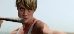 Terminator: Dark Fate starts off with non-stop intense action for about the first 30 minutes. Dark Fate has some really well choreographed fight sequences! A super enhanced human from the future named Grace (Mackenzie Davis) is sent back to protect the new hope of the Resistance, Dani Ramos (Natalia Reyes), from a new Terminator (Gabriel Luna) who has already murdered Dani’s family. Dani has no choice but to trust her new protector. The Duo isn’t alone long when Sarah Connor (Linda Hamilton) is mysteriously sent to help. Sarah has spent her years since Johns death killing Terminators that have apparently continually been sent back from the future. Grace is able to trace the mysterious text messages to the Terminator (Arnold Schwarzenegger) that killed John but has since grown a conscious about life and mankind.